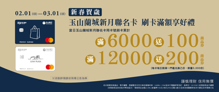 ▲玉山蘭城新月聯名卡 刷卡滿額享好禮 (不參加櫃位除外)